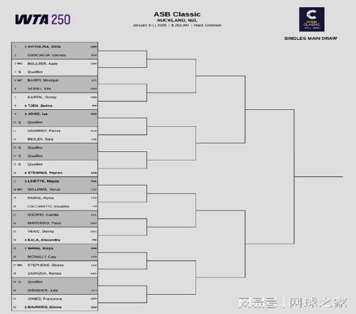 WTA250奧克蘭站:烏克蘭小白菜斯維托麗娜和美國人納瓦羅領(lǐng)銜出戰(zhàn);中國二姐王欣瑜被抽到了下半?yún)^(qū),首輪對(duì)陣美國人麥克納莉;大威廉姆斯也確認(rèn)參賽,首秀的對(duì)手是波蘭人里內(nèi)特。另外,在奧克蘭站女單資格賽首輪較量中,中國小將郭涵煜以4-6 0-6吞蛋不敵赫瓦林斯卡,無緣晉級(jí)。