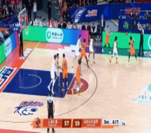 6分17秒,上海落后2分,盧偉重新?lián)Q回白邊,洛夫頓翻身跳投再得手,偰李永煒打進(jìn)個人第3記中投,上海馬上一波6-0反超深圳63-59。